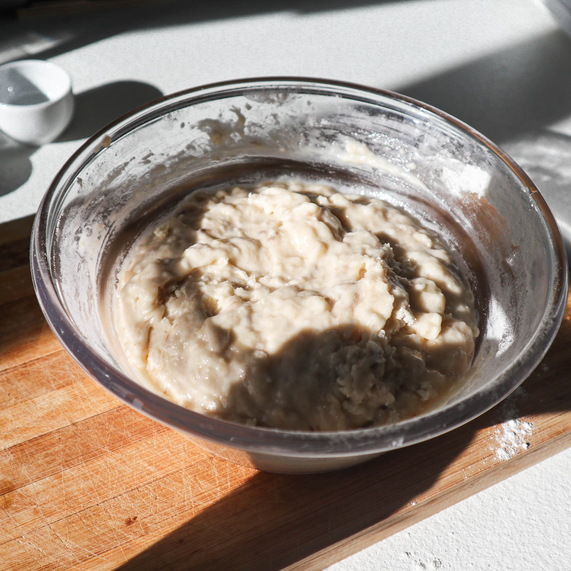 A questo punto aggiungiamo la farina, il lievito ed il bicarbonato, lavoriamo sempre con la forchetta ma mi raccomando, non troppo, così che l’impasto non risulti gommoso. Per questo motivo partiamo con i liquidi e schiacciamo bene la banana, così da non dover lavorare eccessivamente l’impasto con la farina.
