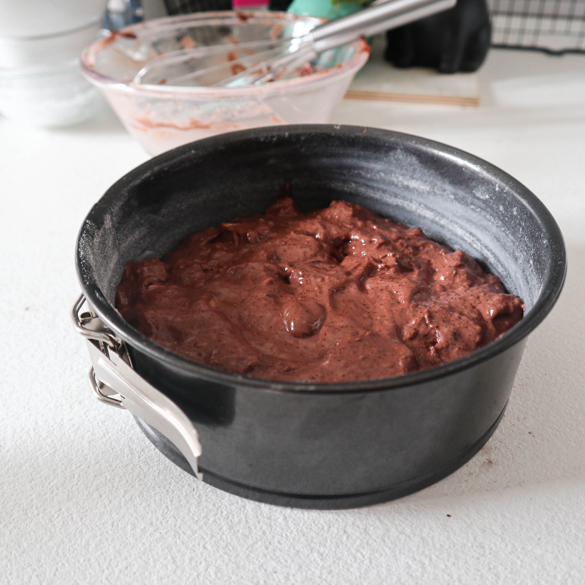Ora non ci resta che trasferire il composto nella nostra teglia, assicurandoci che il forno sia arrivato a temperatura. Cuociamo in modalità statica a 170° per 40 minuti, facendo la prova stecchino. Pungiamo la torta sino al fondo e tiriamo fuori: se risulta asciutto, la torta è pronta. Se sporca lo stecchino, potrebbe richiedere qualche minuto in più. Attenzione ai pezzetti di cioccolato che potrebbero falsare il controllo!