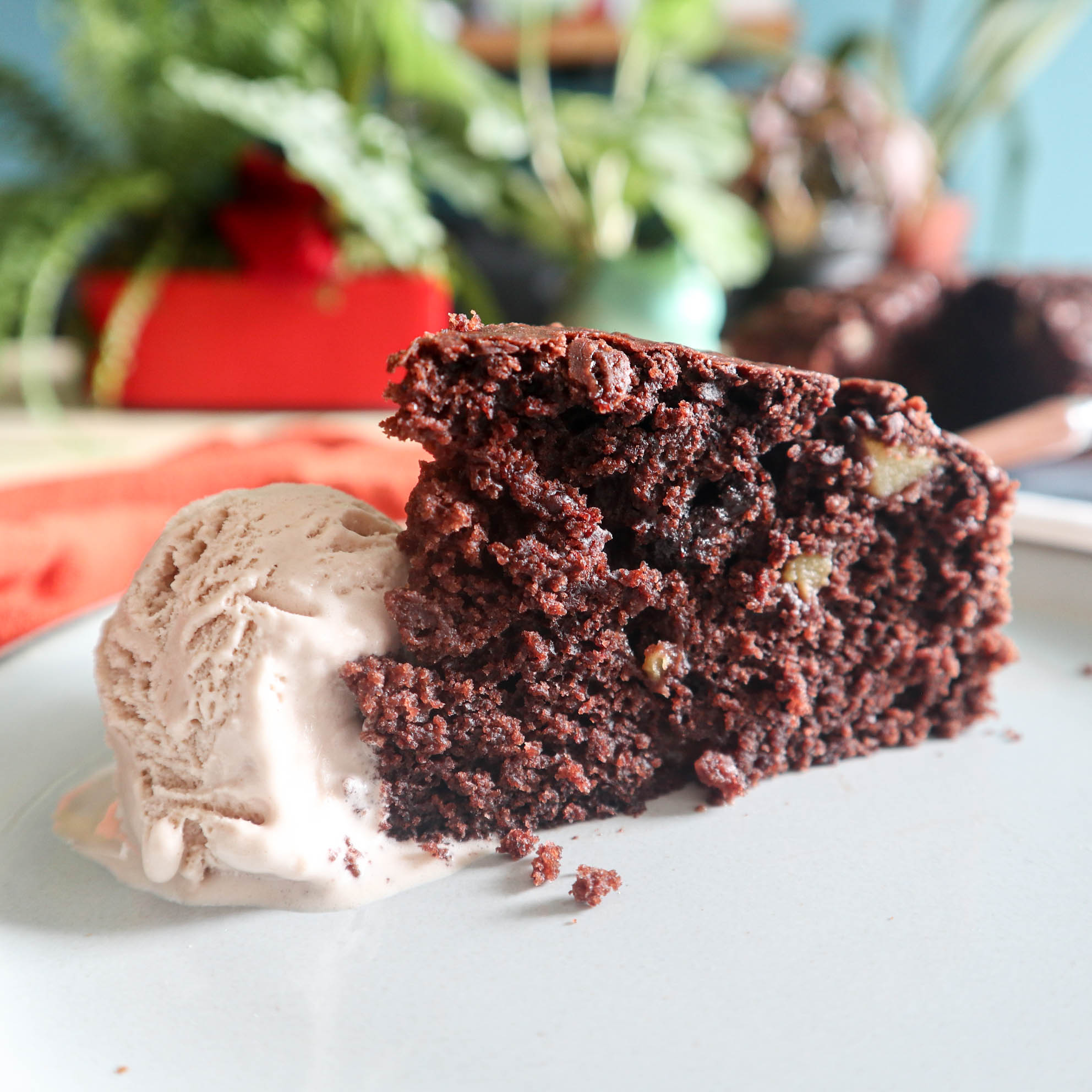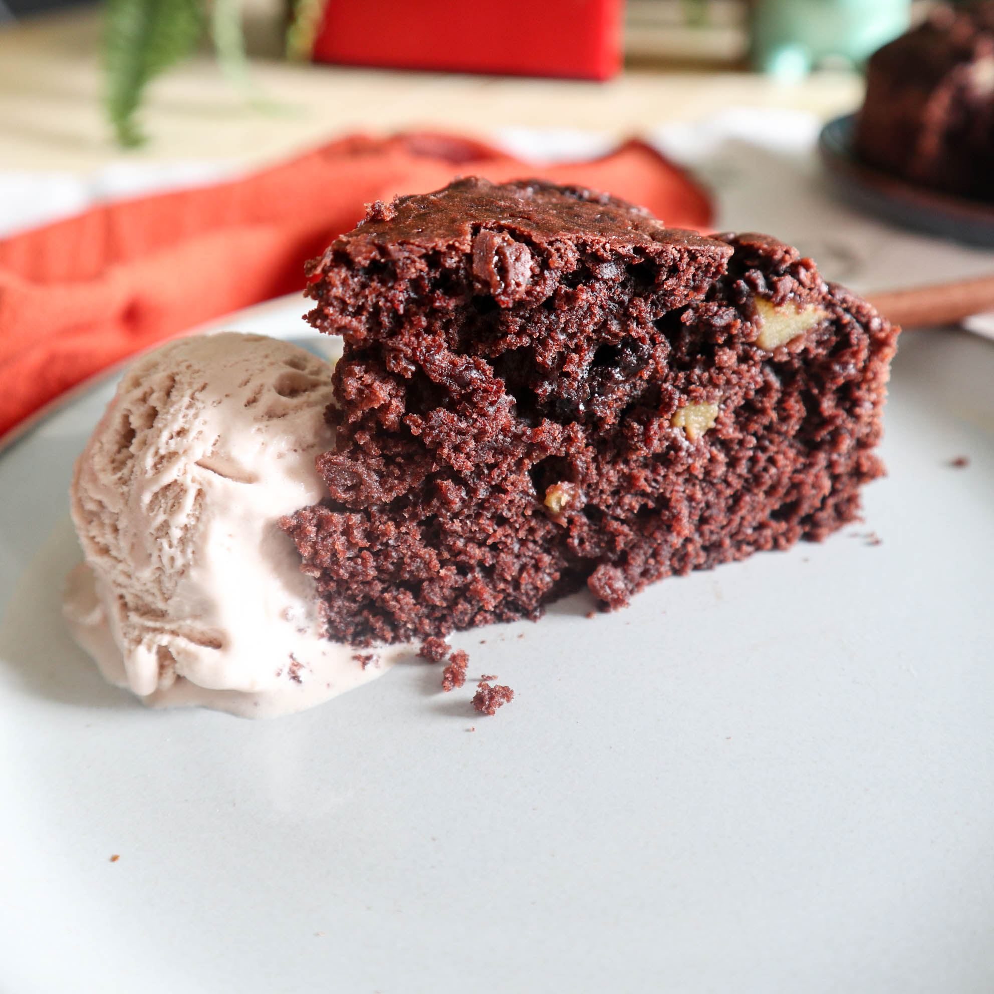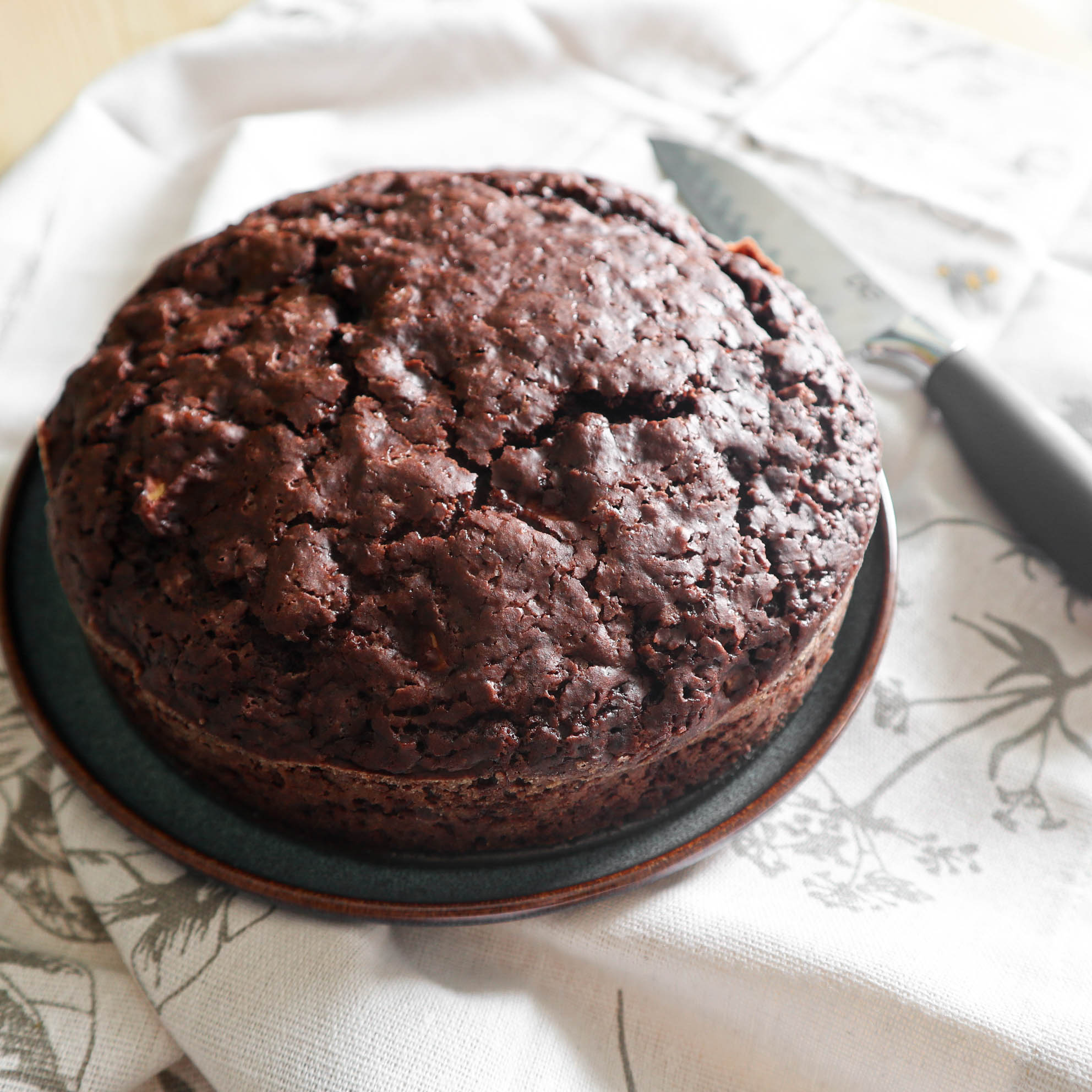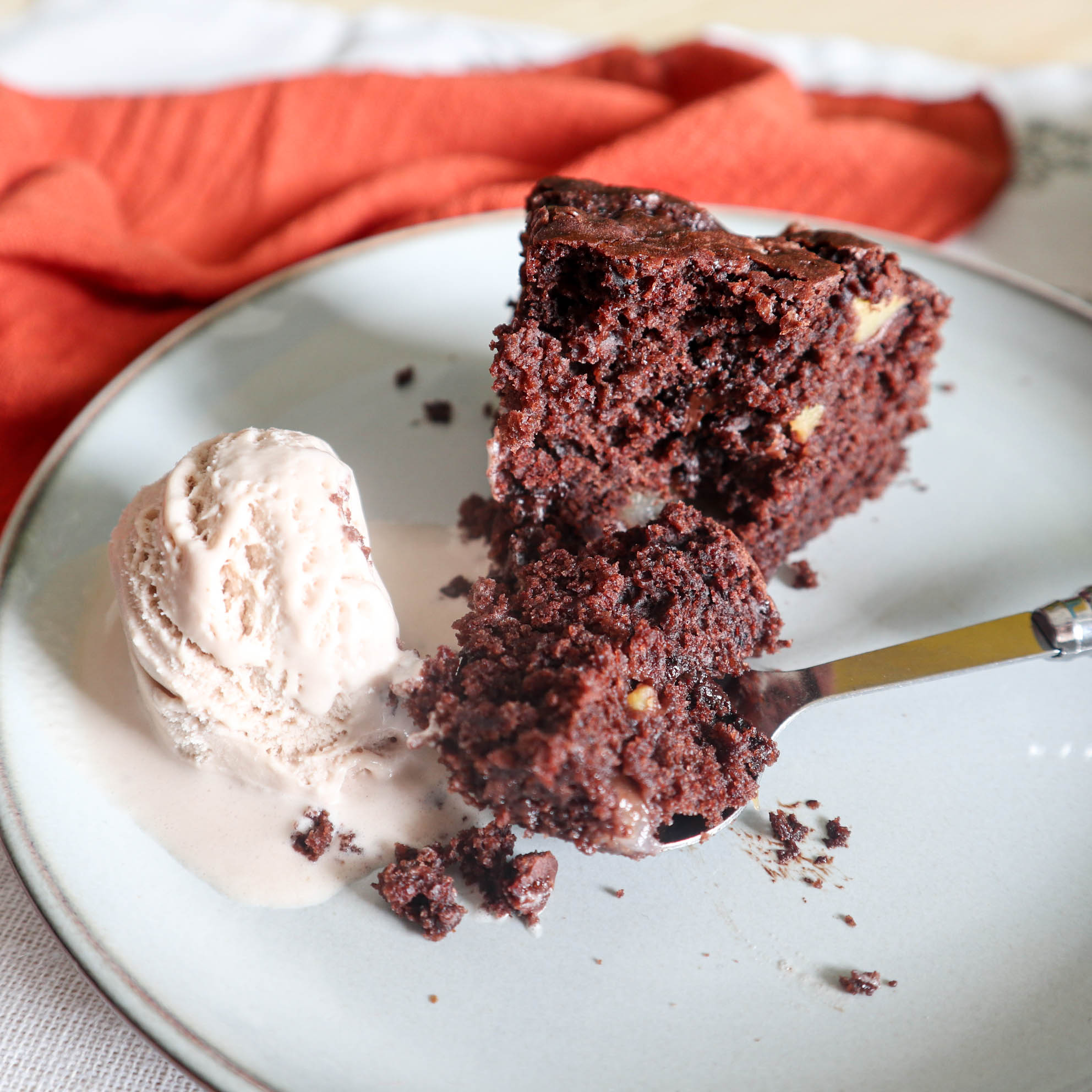 Una volta sfornata, la lasciamo raffreddare nella teglia prima di spostarla in un piatto. Si conserva massimo 3 giorni (almeno a casa mia non supera il giorno 3), io la chiudo in una busta di plastica e la ripongo in forno – spento, mi raccomando! Però è deliziosa anche tiepida con del gelato, io la servo spesso con del gelato vegano e senza zucchero, alla nocciola – non ne trovo altri senza lattosio purtroppo!